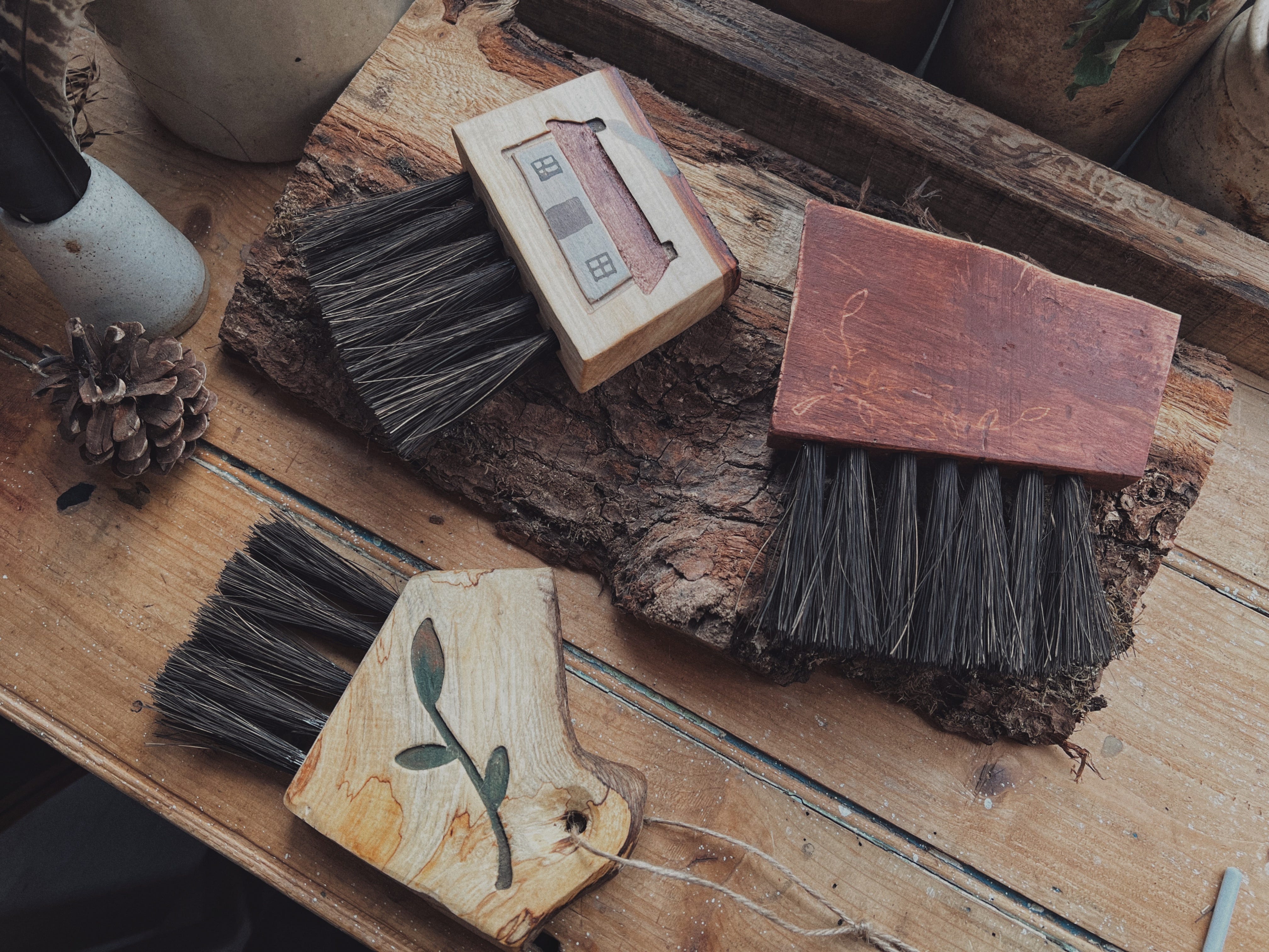 I mentioned in February Field Notes that one of the ways I managed downtime with my online shop was to test out new products, and at the beginning of March I spontaneously bought a batch of natural arenga fibres and tried my hand at brush making. Weirdly, I’ve always been a fan of brushes. In my house I’d have big straw brooms hanging from the wall, I even had an oversized workshop dustpan that was 100% decorative and never got used. Honestly, living tiny now makes me realise that that is actually insane (everything has to be useful in a tiny home) so my brushes now are small, functional, and always good looking as they’ll always be on show.